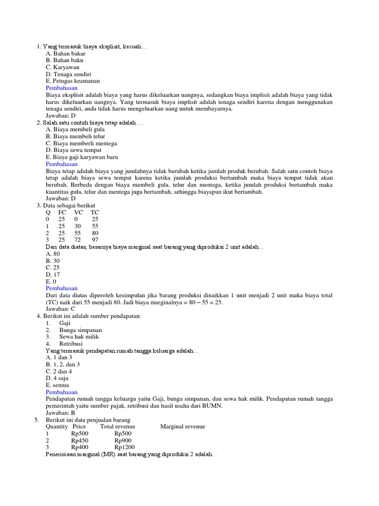 30 Soal Materi Tentang Konsep Ilmu Ekonomi Jawabanku Id from imgv2-2-f.scribdassets.com Ekonom menggunakan istilah keunggulan absolut (absolute adventage) ketika membandingkan produktivitas satu orang, perusahaan, atau negara dengan yang lain. Salah satu cara menjawab pertanyaan mengenai biaya produksi kentang adalah membandingkan bahan baku yang diperlukan oleh dua produsen. Ya, karena biaya adalah penurunan aset. Pertanyaan seputar manajemen pemasaran virell prastama. Pengetahuan ini dapat memberikan justifikasi untuk mengeliminasi dan mungkin menuntun pada perkiraan yang lebih baik mengenai fungsi biaya yang mendasarnya. Contoh kerangka kerja konseptual tujuan kerangka dasar ini digunakan sebagai acuan komite penyusun standar akuntansi keuangan, dalam pelaksanaan tugasnya. Penjelasan lengkap mengenai 3 jenis objek biaya berikut cara kerjanya memutuskan terjun ke dunia bisnis pada dasarnya tidak semudah seperti yang anda bayangkan. Pengertian biaya (cost) dan biaya (beban) biaya (cost) merupakan pengeluaran sumber ekonomis yang diukur dalam satuan uang, contohnya ialah persediaan bahan baku.